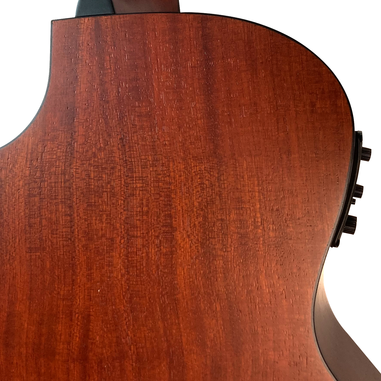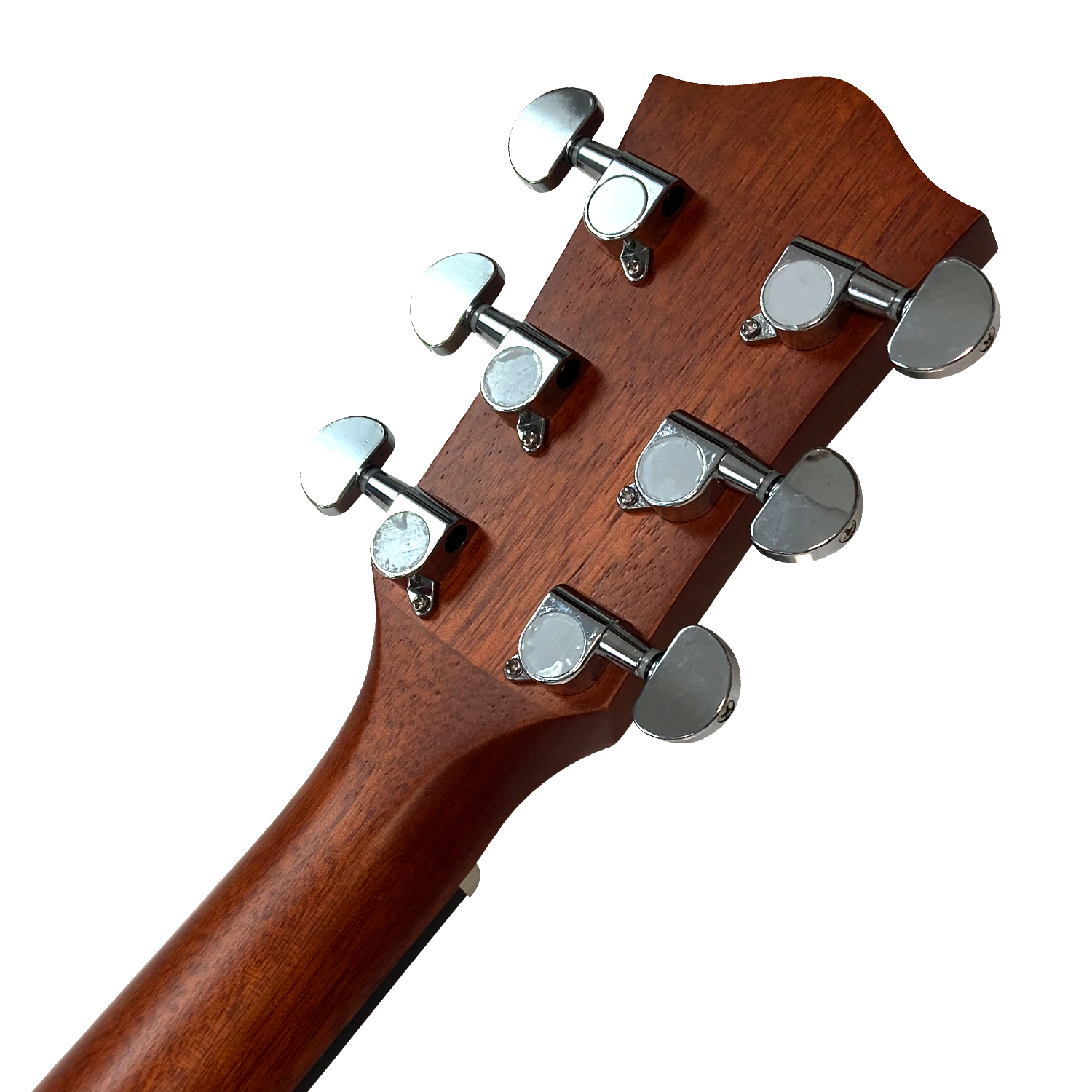 גוף הגיטרה עשוי עץ Sapele, המעניק לצליל עומק, חום ונוכחות, בשילוב חלק עליון מעץ Spruce המספק בהירות, חדות ותגובה מדויקת לפריטה. השילוב בין העצים יוצר סאונד עשיר וטבעי, המתאים לליווי שירה, נגינת אקורדים ופריטות עדינות.